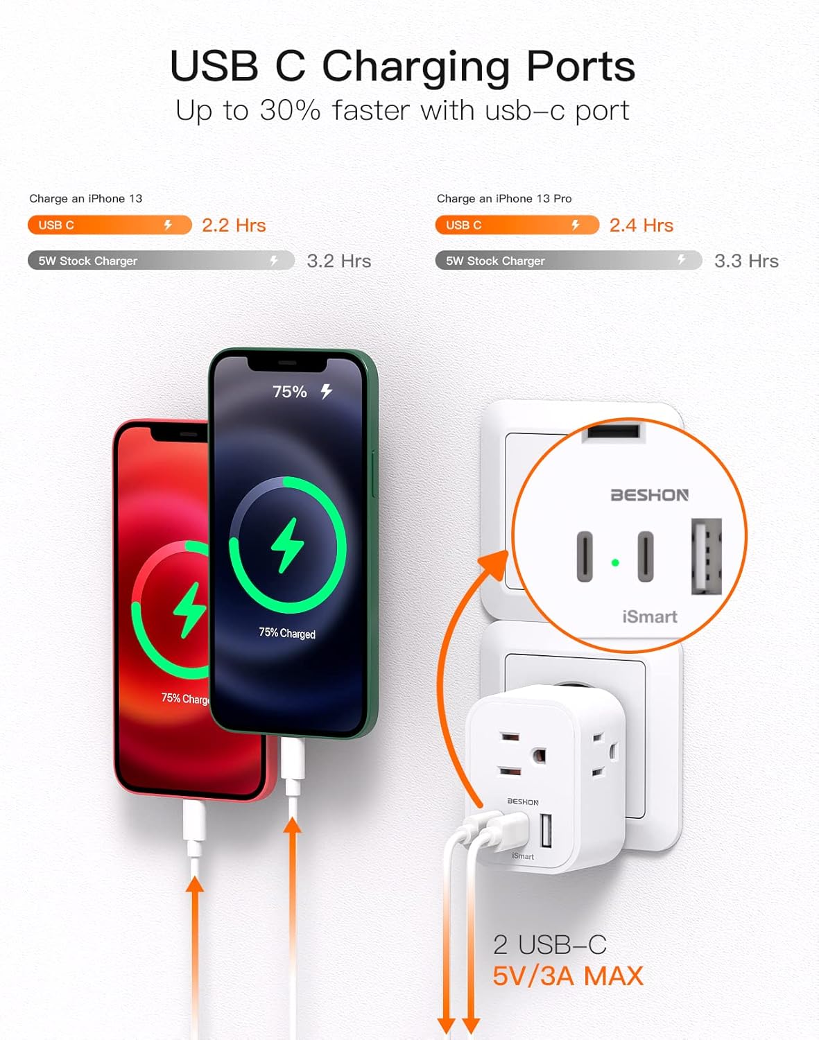 This versatile power plug adapter features 3 outlets and 3 USB charging ports (including 2 USB C ports), allowing you to charge all your devices simultaneously with ease. The Type C plug adapter is compatible with most European outlets, ensuring a seamless charging experience wherever your adventures take you.